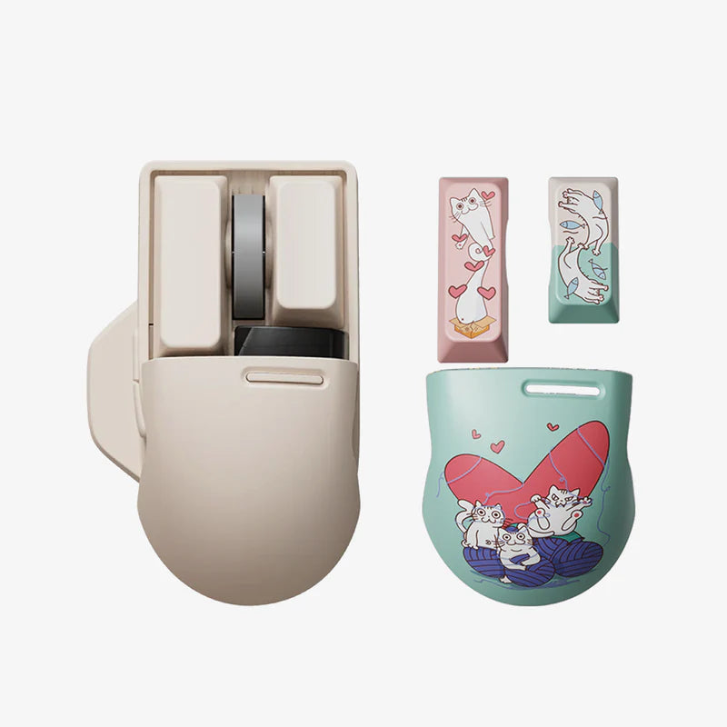 Easily swap out the clicker buttons and the upper case for various design versions. Give your mood and your desk setup a boost with a creative splash of bright color.